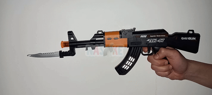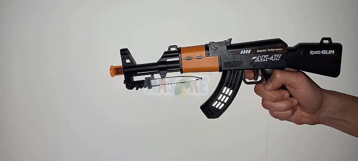 🔫 Incluye mira, cuchillo retráctil y diseño robusto. Ideal para juegos de acción, disfraces o tardes enteras de “¡rendite o disparo!” 🧑✈️💣