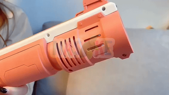 De día o de noche, el efecto visual es impresionante. Burbujas, colores y música en un solo juguete. El sistema antiderrame lo hace ideal para los más chiquitos, ¡y el modo ventilador suave suma frescura después de correr! 🌬️🫧